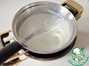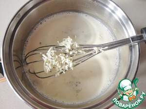 Затем следует отжать желатин и добавить его в горячие сливки. Очень хорошо размешиваем, чтобы желатин полностью растворился.