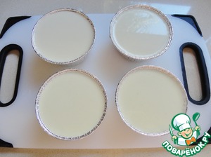 Когда масса станет немного "тяжелой", распределяем ее по формочкам, накрываем пищевой пленкой и ставим в холодильник до полного застывания.
