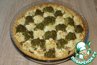 Сверху выливаем нашу подготовленную ранее заливку из яиц, сливок, сахара и перца.