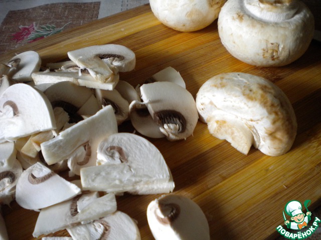 А пока займемся грибами. Грибы режем ломтиками.