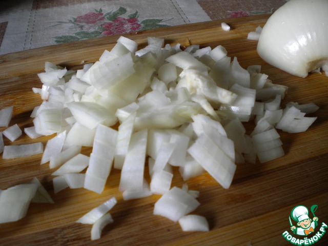 Лук - довольно мелко, но без фанатизма.