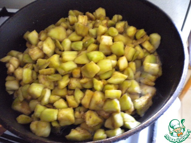Теперь возвращаемся к нашим баклажанам. Их промываем, хорошо отжимаем и обжариваем на постном масле 5-10 минут.