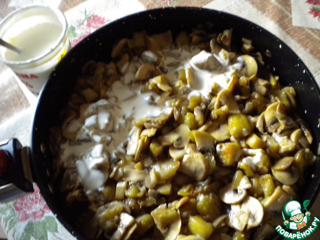 Заливаем сметаной. -