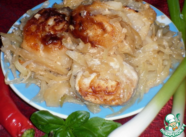 - Фарш индюшачий (250 г филе грудки индейки+1/2 луковицы смолоть в мясорубке, посолить, поперчить) — 300 г