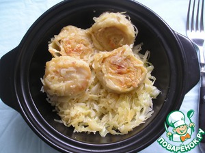 Перевернем, выложим сверху капусту, выровняем слой, зальем заливкой, прикроем и дадим закипеть. Сразу снижаем огонь до средне-низкого и готовим 25 минут. Снимаем с огня и даем постоять 15 минут.