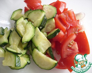 • Цуккини нарезать и обжарить в небольшом количестве растительного масла, добавив немного соли и выдавленный через пресс чеснок.