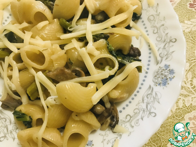 Спагетти с грибами, спаржей и шпинатом