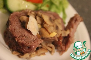 Рецепт «Мясной рулетик с шампиньонами и целыми яйцами»: