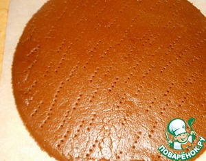 Торт покрыть шоколадной глазурью: соединить какао, сахар и молоко, мешая, довести до кипения, добавить сл. м. Горячей глазурью покрыть торт. Торт должен постоять 10-12часов.