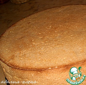 Испечь бисквитный корж: белки взбить с половиной сахара до крепких пиков, желтки отдельно взбить с оставшимся сахаром, добавить ванилин. Соединить желтки с белками, просеять муку в 2-3 приема, аккуратно лопаткой перемешать тесто. Бисквит выпекать при 180нрадусах 35-40мин. Размер формы 26см.
