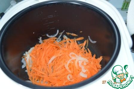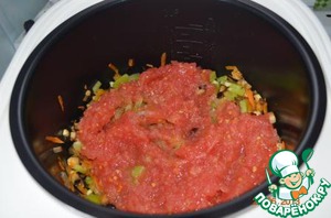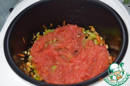 Добавить к овощам. Посолить по вкусу. Добавить воду. Тушить 1 час на режиме Тушение.