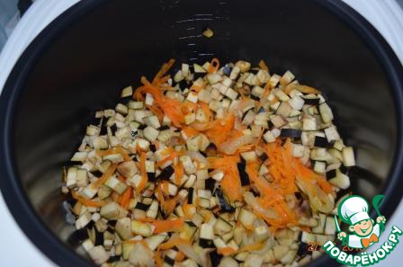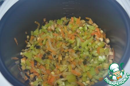 Добавить к луку и моркови. Жарить 10 минут. Иногда помешивать.