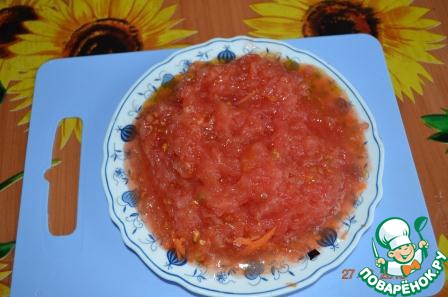 Помидоры ошпарить и снять кожицу. Натереть на крупной терке.