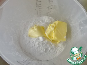 Взбиваем масло с сахарной пудрой. Делаем это недолго, чтобы масло не расслоилось.