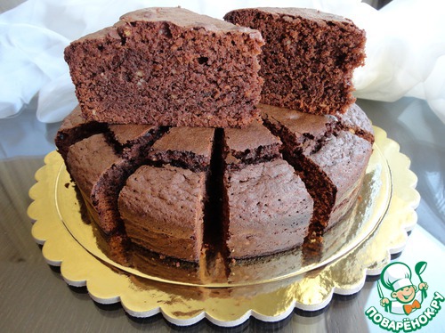 В форму диаметром 24 см (я использовала кондитерскую бумагу, но можно просто смазать форму маслом и присыпать мукой) переливаем наше тесто. Автор советует выпекать в духовке 30 минут при температуре 170 градусов, затем снизить температуру до 160 градусов и выпекать еще 15 минут. Но, мне этого времени оказалось мало, я выпекала до сухой лучинки. Так что ориентируйтесь на вашу духовку.