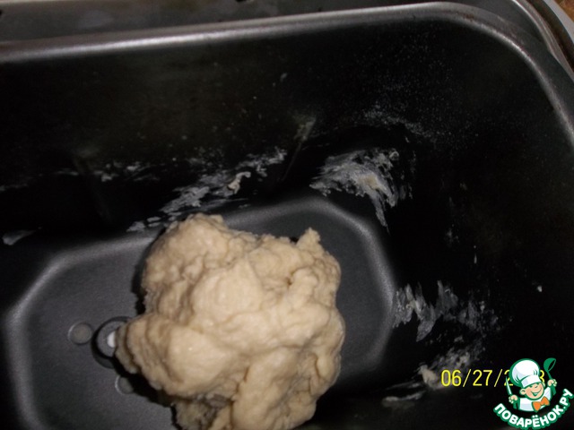Замешиваем тесто, для этого смешиваем сливочное масло, молоко, яйцо, соль (щепотка), сахар, муку и дрожжи. Я доверила весь процесс своей хлебопечке.