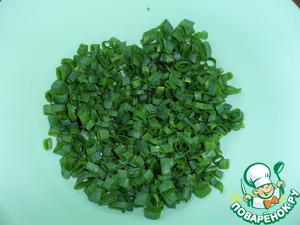 Режем лук. Я добавила ещё немного измельченного укропа.
