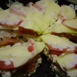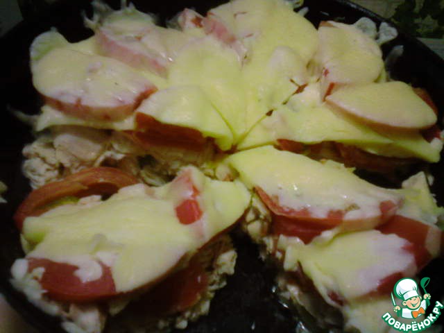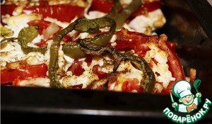 Затем помидоры, нарезанные кружочками, посыпать чёрным перцем и орегано.