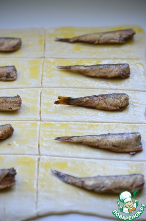 Шпроты положите на полоску теста.