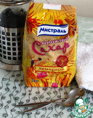 В стаканы насыпаем коричневый сахар по вкусу, я люблю достаточно сладкий чай. |