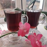 Доливаем воду, пробуем. Если нужно, корректируем. Можно подавать! Вкусный, кисло-сладкий, слегка терпковатый напиток. |