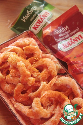 Маринуем креветки в имбире и перце чили. Они станут острыми, прямо обжигающими. Нам это и нужно.