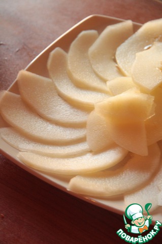 Делаем карпаччо из дыни, шинкуем ее максимально тонко.