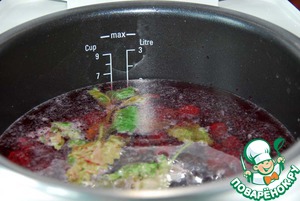 Далее добавляем воду до метки 2 л. Закрываем и продолжаем варить.