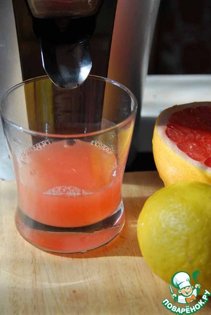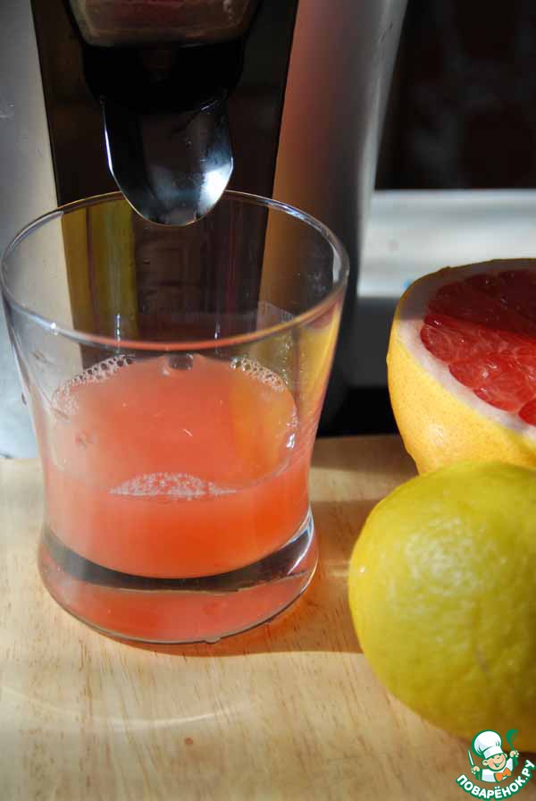 Отвар из имбиря остужаем, процеживаем и добавляем к соку грейпфрута и лимона.
