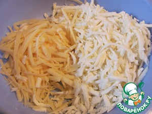 Берём нужные нам продукты. На тёрке натираем сыр голландский и сыр адыгейский.
