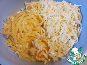 Добавляем яйцо и чеснок и натёртое на тёрке сливочное масло и перемешиваем.
