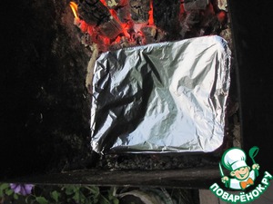 Сверху в 2 слоя, как крышкой, плотно прижала обычную фольгу.