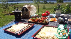 В Японии очень популярно это блюдо. Рецепт я с трудом нашла на японском сайте. Мы приготовили курицу по этому рецепту и решили, что в России тоже можно готовить блюда японской кухни, которые практически не отличаются от тех, которыми нас угощали в Японии. Курицу очень легко приготовить на пикнике, если у вас есть сковорода вок, замариновав её дома. Потому что готовится она очень легко и быстро. Если вы любите азиатскую кухню с кисло-сладким вкусом, то вам - сюда.