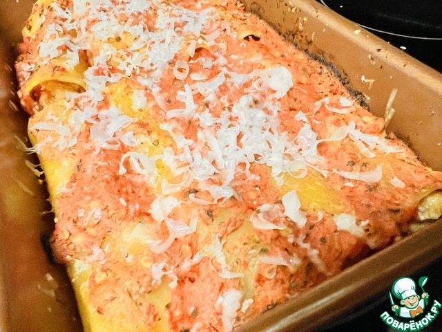 Рецепт «Каннеллони с курицей под томатным соусом»: