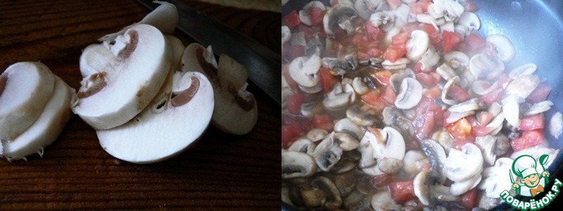 -Томаты нарезать кубиками, добавить к грибам, снова посолить и обжаривать до полной готовности грибов.
