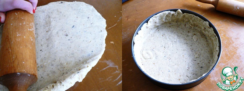 -По истечению времени вытащить тесто и раскатать под форму. (У меня тефлоновая форма, поэтому я не застилала пергаментной бумагой). Выложить тесто в форму, сформировать бортики.