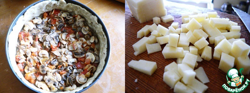 Рецепт «Киш с шампиньонами, чеддером и томатами»: