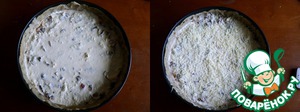 -Вылить на пирог заливку, сверху посыпать оставшимся натёртым сыром.