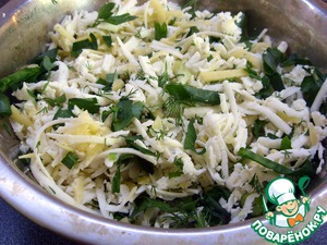 Смешиваем сыр с зеленью.
