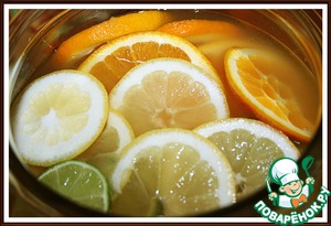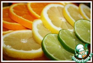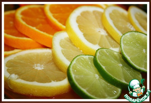 5. Апельсин, лимон и лайм нарезать на тонкие колёсики.