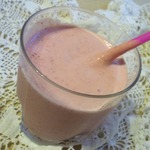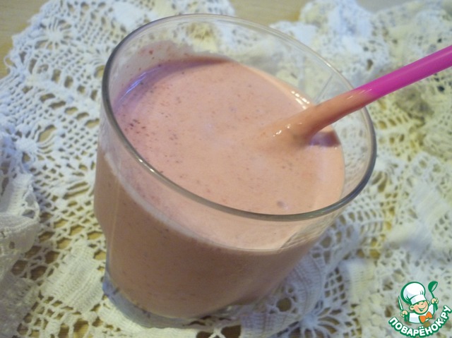 Не удивляйтесь! Оказывается, чизкейк можно не только есть, но и пить! Получается отличный смузи с легким вкусом клубничного чизкейка. Чудесно освежает!