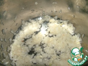 Мелко режем лук и обжариваем в толстостенной кастрюле на растительном масле до золотистого цвета.