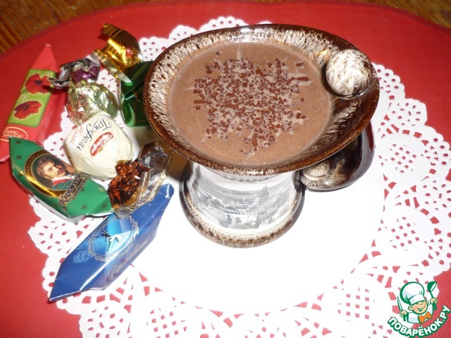 Разлить по чашками и посыпать натертом на мелкой терке горьким шоколадом...