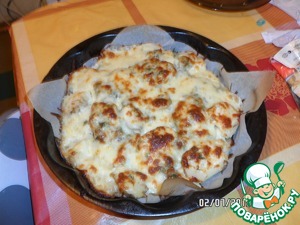 Потом посыпать сулугуни и поставить в духовку минут на 10.
