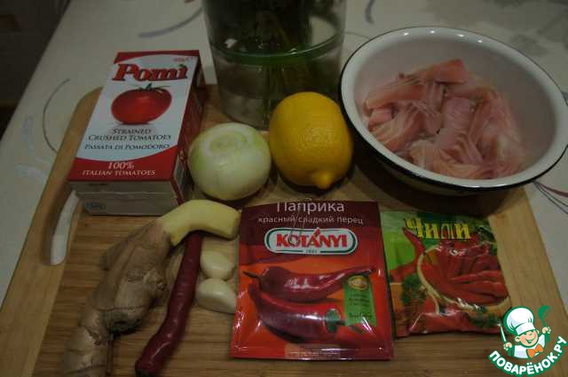 Ингредиенты для «Острый томатный суп с рыбой»: