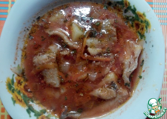 Рецепт увидела в интернете, но, когда начала готовить, начала вносить изменения и дополнения по вкусу мужа, для которого и варился суп. В результате получился совсем другой супчик... так сказать, по мотивам. Мужу суп очень понравился, сказал: "Зачет!"