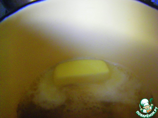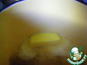 • Пока тушится, готовим соус. В кастрюльке растопим сливочное масло.
