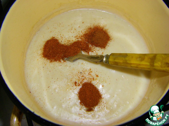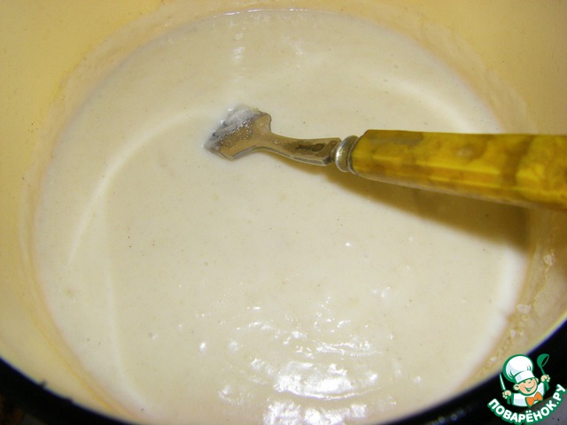 • Постоянно помешивая, медленно вливаем молоко. Доводим до консистенции сметаны, не слишком густой.