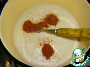 • Добавляем специи и 1 ч. л. соли. Помешивая, варим еще минут 5. Соус готов.