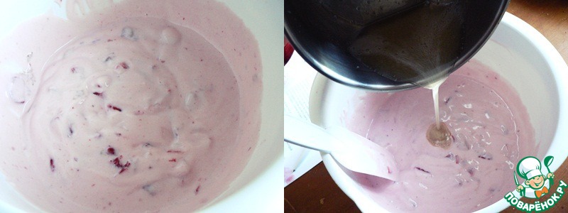 -Влить растопленный желатин в йогуртовую массу, тщательно перемешав. -